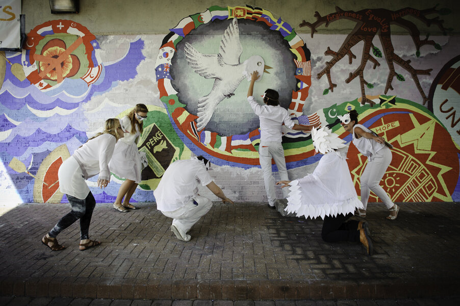 Through the PIECES FOR PEACE project, youth around the world participate in workshops where they create artwork in response to the question “WHAT DOES PEACE LOOK LIKE TO ME?”